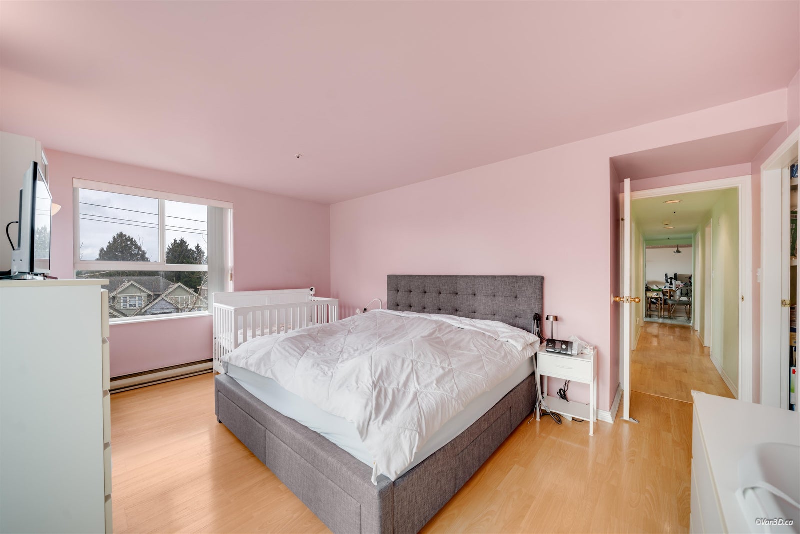 Stunning Southwest Corner Penthouse offering over 1,300 sq. ft. of bright, spacious living with 3 bedrooms and 2 bathrooms. This rare corner unit features two huge balconies, perfect for relaxing, entertaining, or enjoying beautiful open views. The home boasts an open-concept living and dining area, highlighted by floor-to-ceiling windows that flood the space with natural light, and a cozy fireplace that adds warmth and charm. Thoughtfully designed for comfort and functionality. Two side-by-side parking stalls and a storage locker-a valuable bonus for a penthouse. Bus station just outside of the building and also short distance to Blundell centre-banks, restaurant, grocery etc. A rare opportunity to own a spacious penthouse in a prime location-don't miss out!