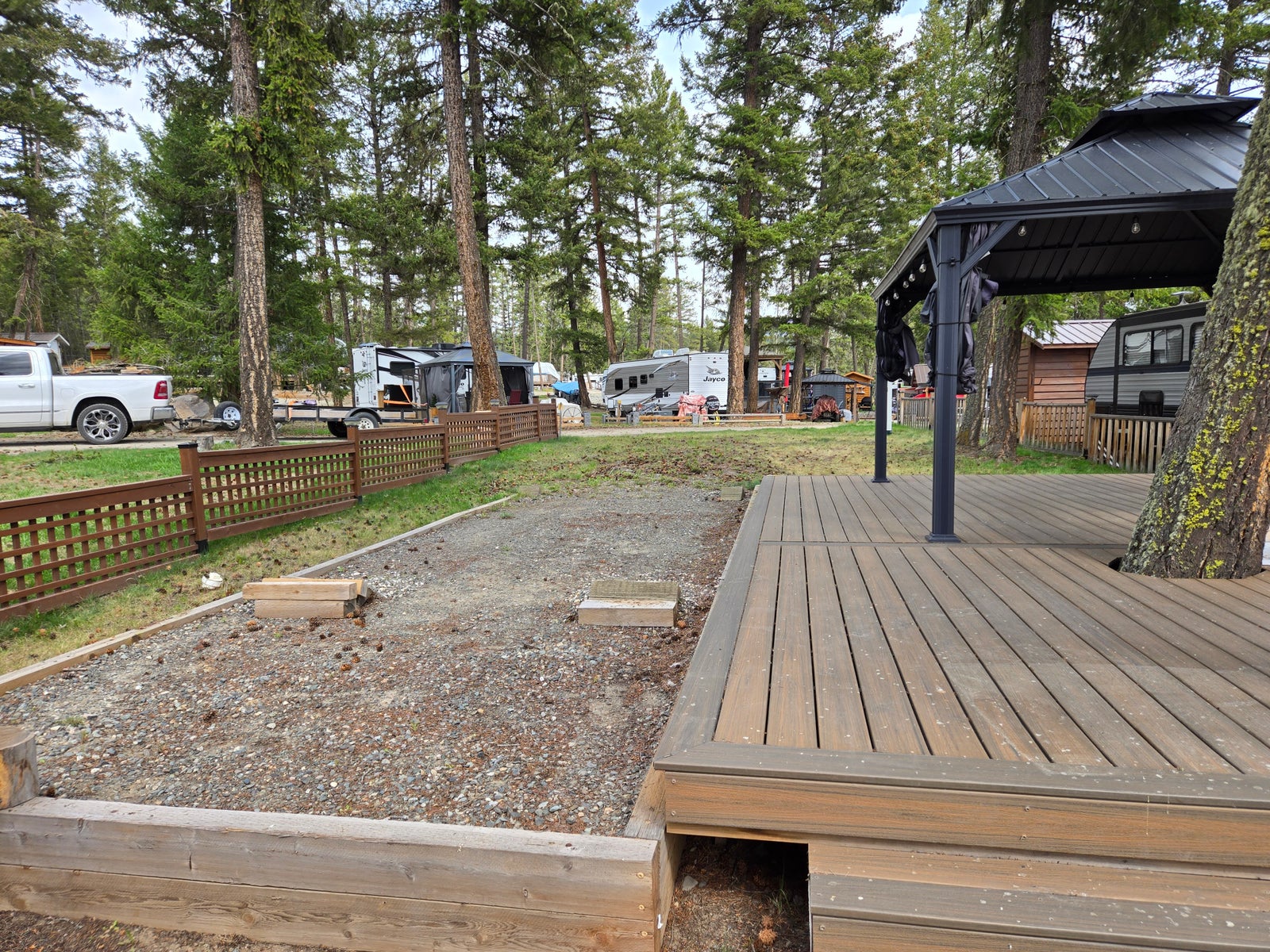 - Upgraded RV pad with full 50-amp hookup & sewer connection